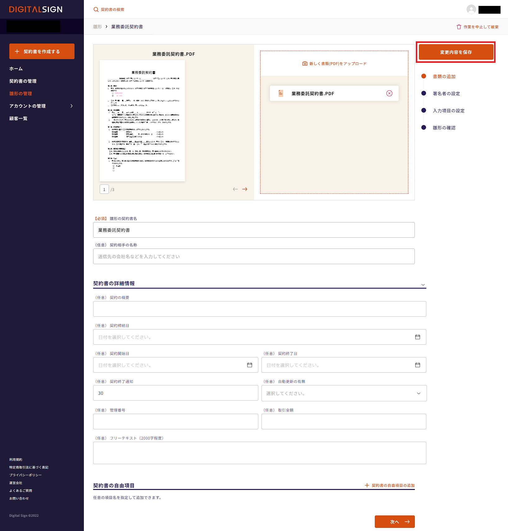 STEP① サイドメニューから「雛形の管理」を選択
