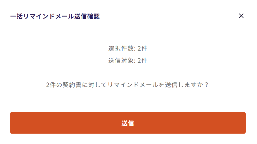 対象の契約書を選択し「一括リマインドメール送信」(赤枠)をクリックします。
